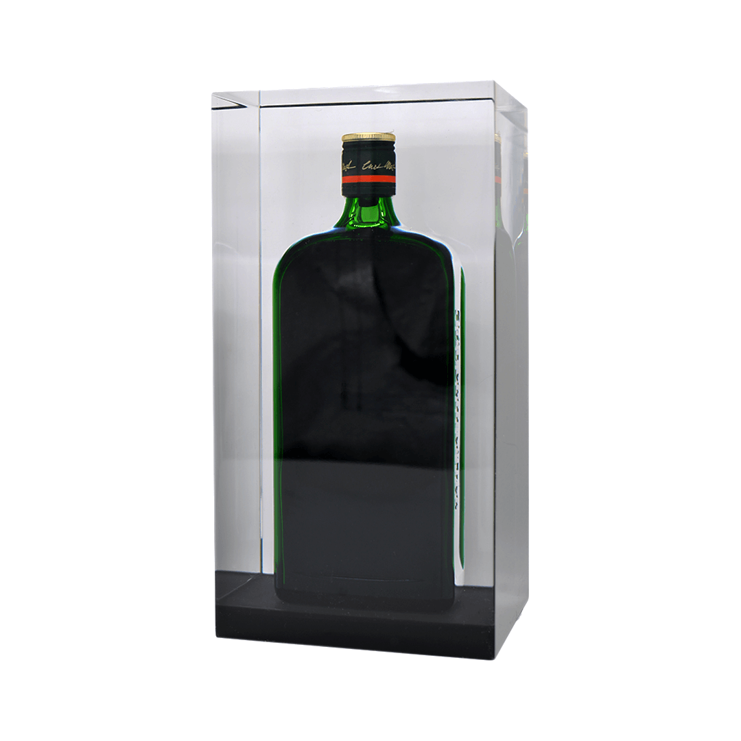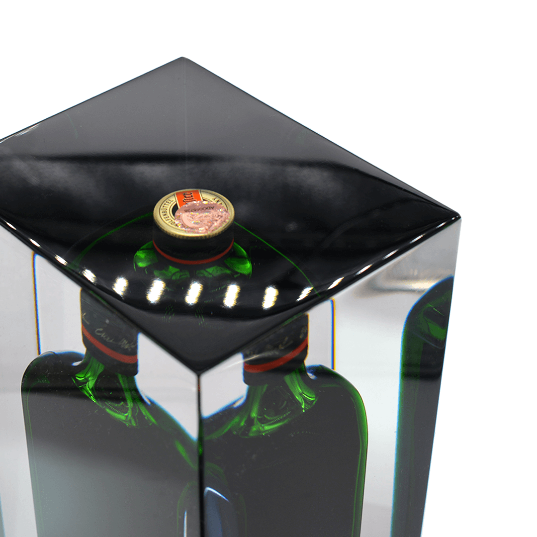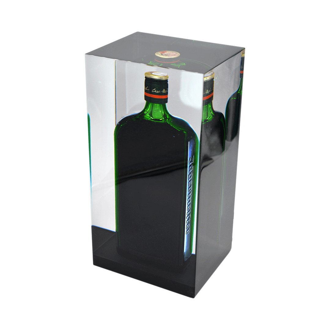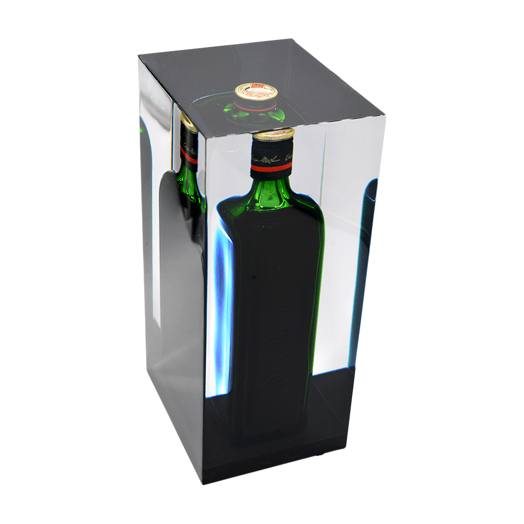 Epoksiidvaiku valatud (näidisel 1 liitrine tekiila) pudel. Kingitusele on võimalik graveerida.